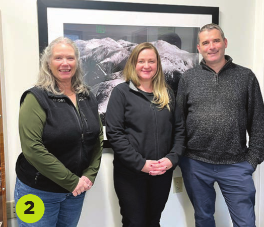 2. Meredith Village Savings Bank announced a $2,000 donation to support the nonprofit Mount Washington Observatory. The observatory’s goal is to advance the understanding of Earth’s natural systems which create weather and climate. Standing at the MWOBS administrative offices in North Conway are, from left: MWOBS Director of Finance and Administration Brenda Sullivan; MVSB Business Development Officer Ariana Roy; and MWOBS Executive Director Drew Bush.