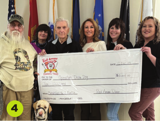 4. The Red Arrow Diner has donated $10,000 to the nonprofit Operation Delta Dog, which rescues and trains shelter dogs to be psychiatric service companions for local veterans experiencing Post Traumatic Stress Disorder (PTSD), Traumatic Brain Injury (TBI), and Military Sexual Trauma (MST). The diner raised funds from Oct. 1 to Nov. 11, 2025, with their Breakfast for a Year raffle.
