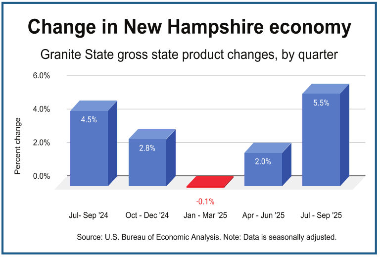 The New Hampshire economy grew 5.5% over the summer, one of the fastest rates in the country. Also, the New England inflation was a hair lower than the national rate.