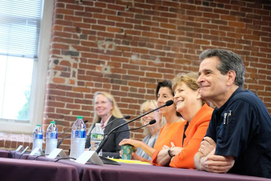 Dean Kamen, right, during a panel discussion in 2023 inside of ARMI.