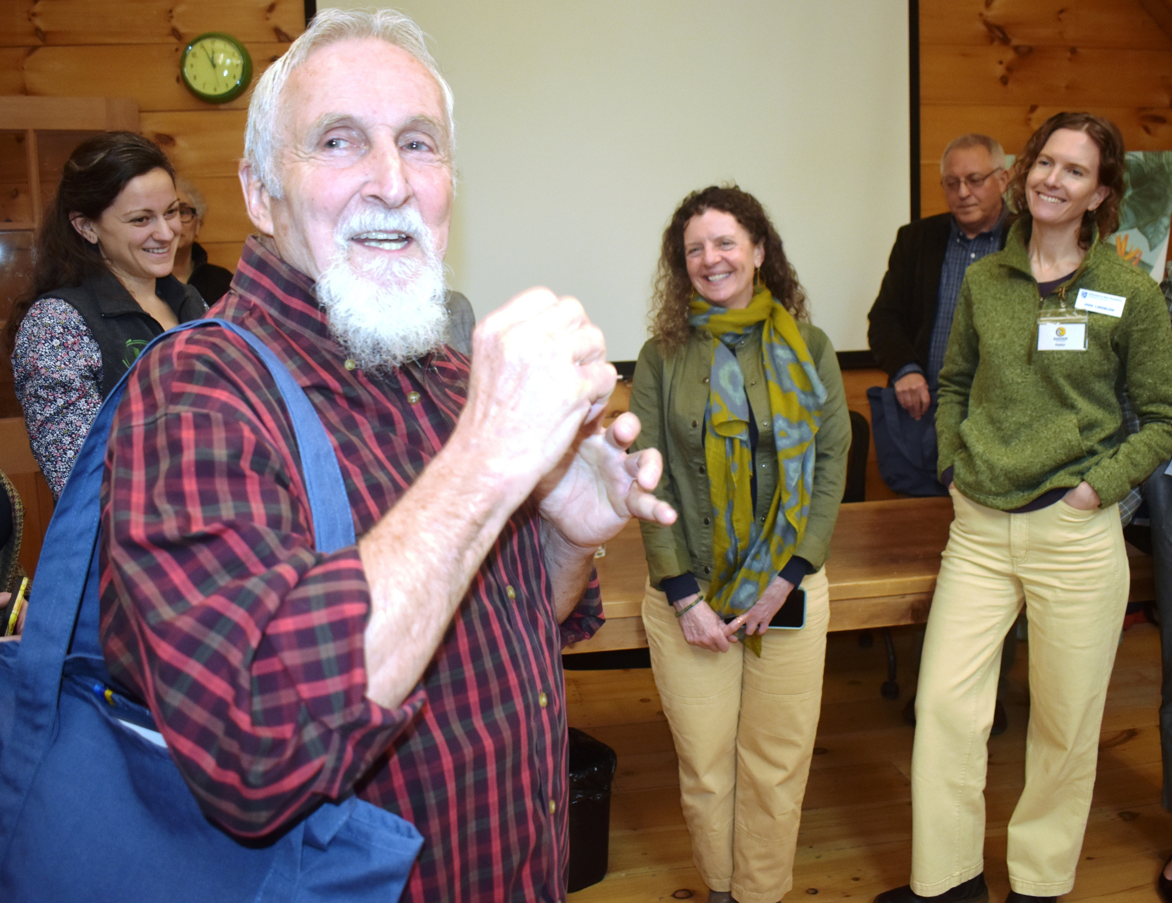 Bill Whyte, founder of W.S. Badger body-care products, talks about the company at Badger in Gilsum on Feb. 18 at a Grounded Growth forum. From left: Molly Taflas, deputy director, Northern Border Regional Commission; Janelle Lawton, director, NH Outdoor Recreation Industry Development; Mike Cote, editor, NH Business Review; and Jada Lindblom, economic development state specialist, UNH Cooperative Extension.