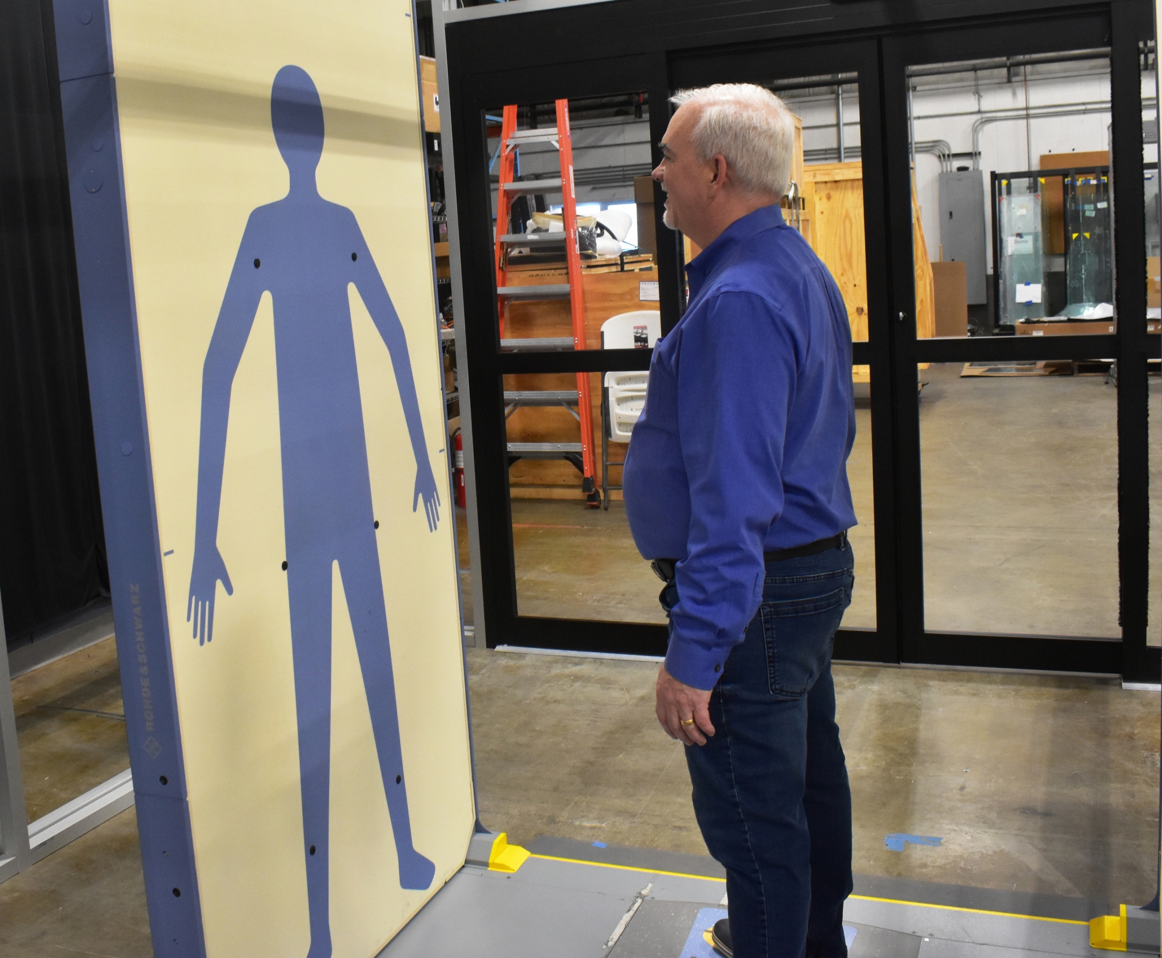 Steve Caroselli, CEO and president of Orion Entrance Control, stands Feb. 19 inside his company’s DataGuard automated screening system for data centers.
