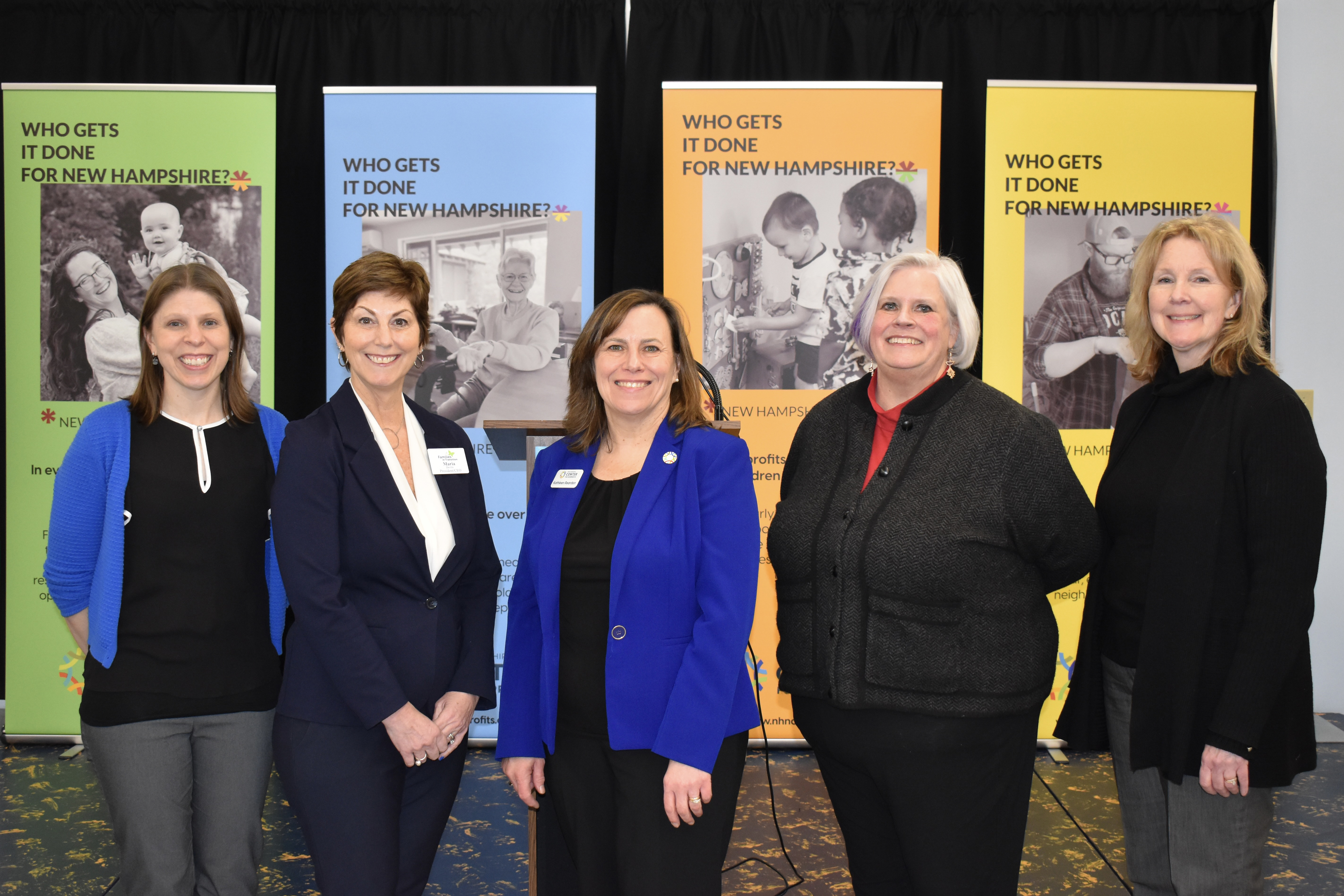 From left: Shana Hawrylchak, executive director, SEE Science Center; Maria Devlin, president/CEO of Families in Transition; Kathleen Reardon, CEO of the NH Center for Nonprofits; Betsy Burtis, chief operating officer of Amoskeag Health; and Brenda Guggisberg, executive director of the Upper Room.