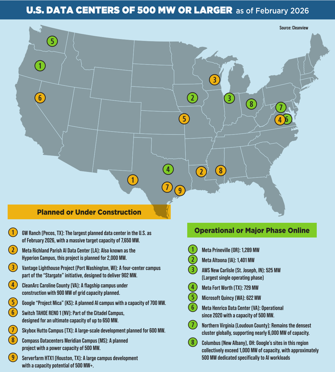 And data centers that exceed 500 megawatts of electrical demand are found in several other states, fueled by tax incentives, abatements and infrastructure buildouts, according to AbitOs, a Florida-based accounting and advising firm.