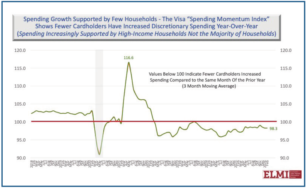 Gottlob also noted a divided economy. High income households continue to spend because stock and home prices are elevated. But people on the lower levels are facing pressures and trimming spending.