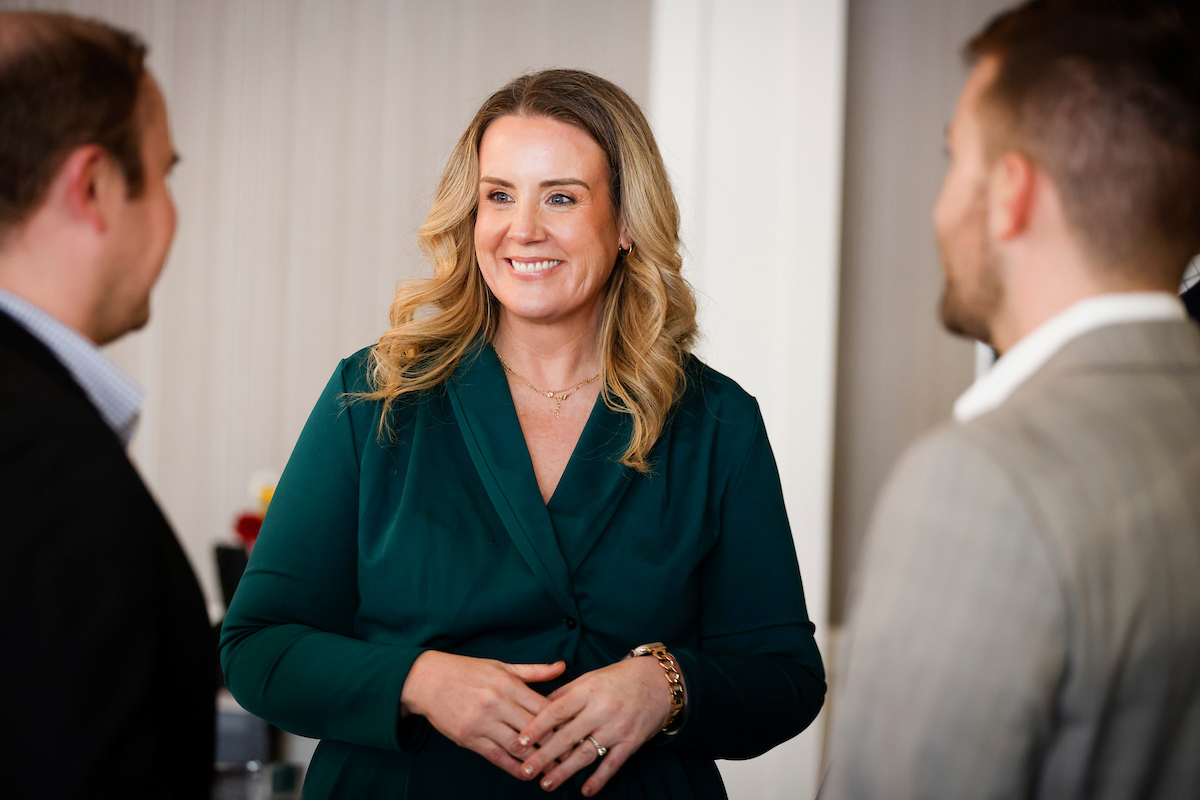 Dressed in a flowing green jumpsuit and heels, the new interim program director of Easterseals NH Military and Veterans Campus was introduced to a select gathering of community leaders March 10 at the Manchester Country Club in Bedford.