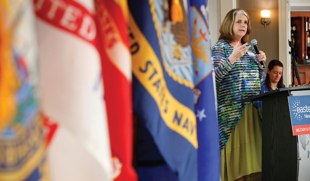 Maureen Beauregard, president and CEO of Easterseals NH and VT, talks about the Military and Veterans Campus in Franklin on March 10 at Manchester Country Club in Bedford. (Courtesy of Easterseals NH & VT)