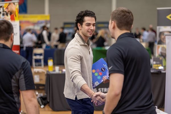 A Keene State student networks with an employer representative during the career and internship fair. (Courtesy of Keene State College)